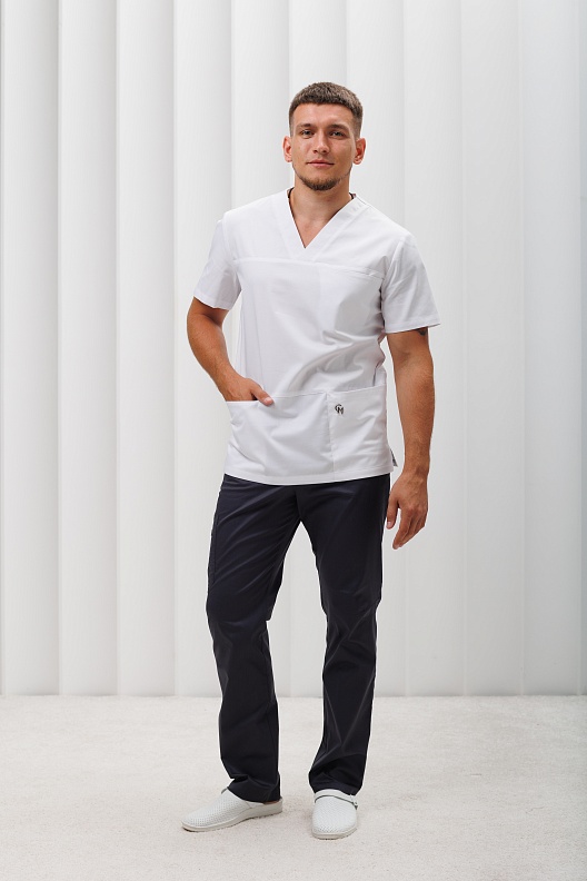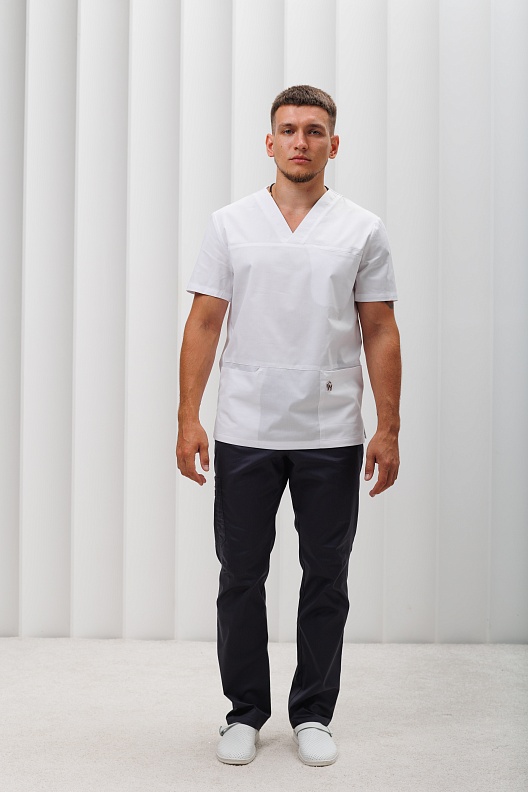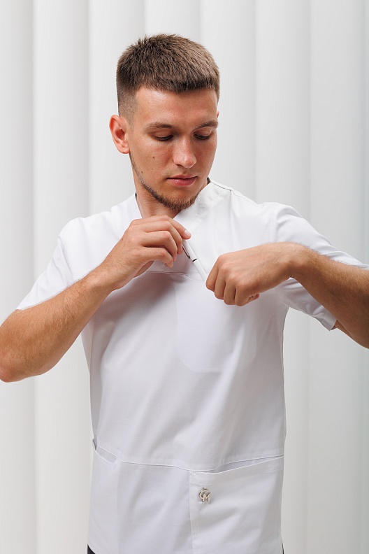 Мужская медицинская куртка – это отличный выбор для специалистов в сфере здравоохранения. Классическая хирургичка подойдет врачам различных специальностей. В состав изделия входит хлопок, полиэстер и эластан – благодаря чему униформа будет комфортно ощущаться на теле в течение всего дня. Купить медицинскую куртку без брюк стоит по нескольким причинам: она обладает минималистичным прямым силуэтом с разрезами по боковым швам, обеспечивающими удобную посадку и свободу движений. Также, изделие имеет V-образную горловину и короткий рукав, что делает его практичным и комфортным в использовании. В хирургичке предусмотрены два боковых кармана и один нагрудный, которые будут идеально подходить для хранения смартфона, инструментов и мелочей. Помимо куртки, в «Капризной моде» можно купить медицинский мужской хирургический костюм. Вся наша продукция изготовлена из качественных материалов, которые не требуют сложного ухода, но при этом очень износостойкие и долговечные. Приобретение новой хирургички позволит вам создавать новые образы и сочетать ее с прямыми брюками или джоггерами: таким образом вы получите несколько стильных и функциональных костюмов.