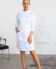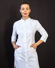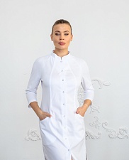 Халат медицинский женский A195 3/4 Бамбук (Белый, ложная сетка белая)