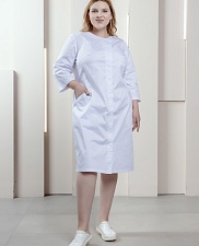 В халате есть два глубоких кармана с удобным наклонным входом по бокам, где можно хранить необходимые медицинские инструменты и принадлежности. Горловина круглой формы обеспечивает комфорт и свободу движений.