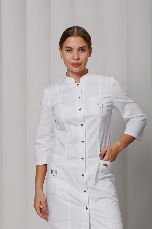 Халат медицинский женский A356У 3/4 Экстра (Белый, Без отделки)