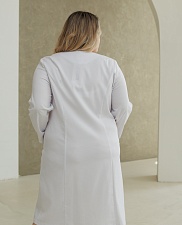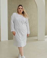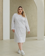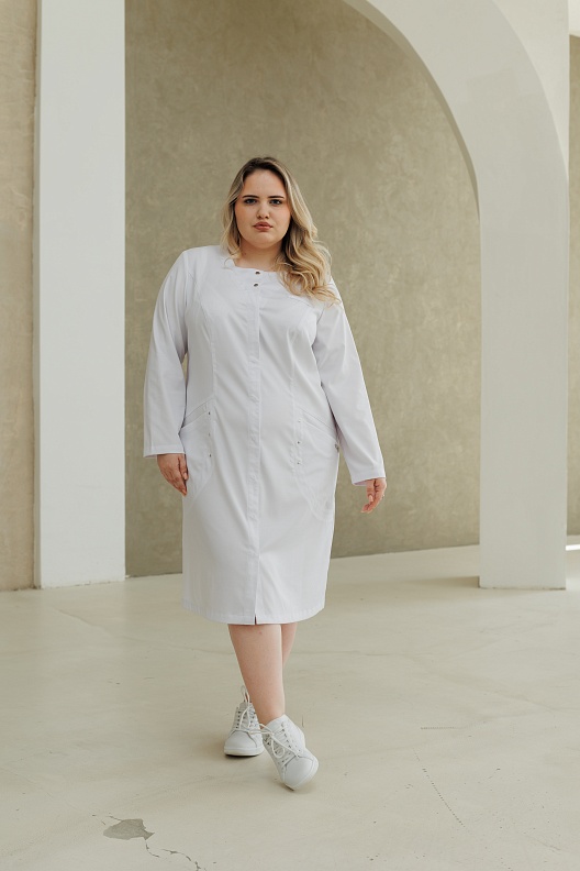 Женский медицинский халат больших размеров. Халат женский слегка расклешенный к низу, с застежкой по борту на кнопки. Он выполнен из дышащей мягкой ткани, что обеспечивает ощущение комфорта в течение всего рабочего дня. Халат застегивается на кнопки. Идеальная посадка не сковывает движения.