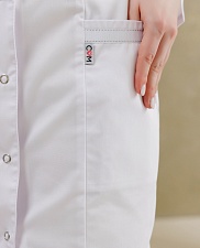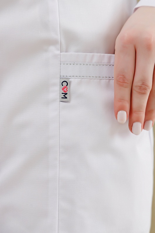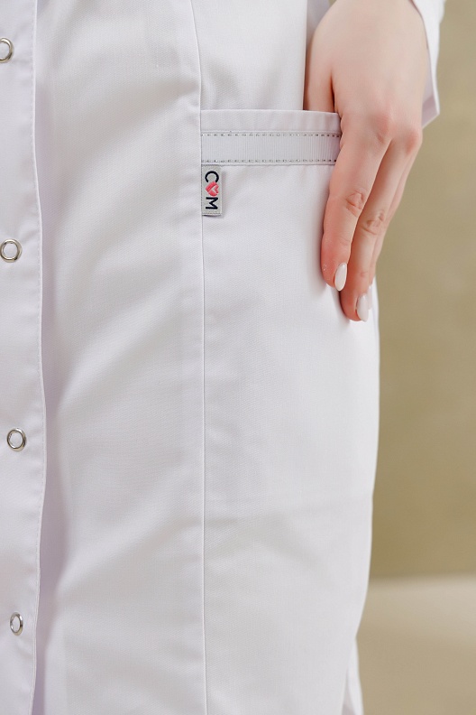 Прочная застежка на кнопки выдерживает многократные циклы застегивания/расстегивания. Два глубоких боковых кармана позволяют легко разместить в них смартфон, ключи, конспекты, планшет или необходимые рабочие аксессуары и документы. Разрезы в боковых швах низа халата добавляют свободы движений.