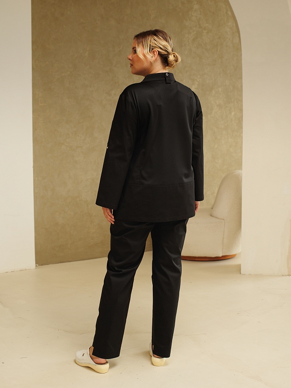 Китель поварской женский A520Б 7/8 Экстра (Чёрный, ложная сетка черная)