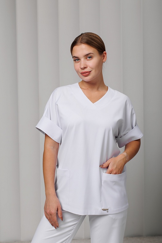 Куртка медицинская женская A549кор. Тевия (Белый, Без отделки)