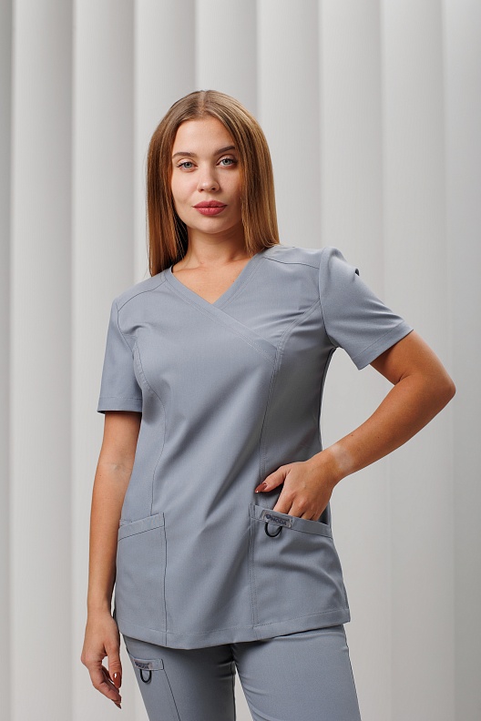 Женская медицинская куртка AP834 - это стильная и функциональная хирургичка. Она обладает полуприлегающим силуэтом, который подчеркивает фигуру и создает элегантный образ.